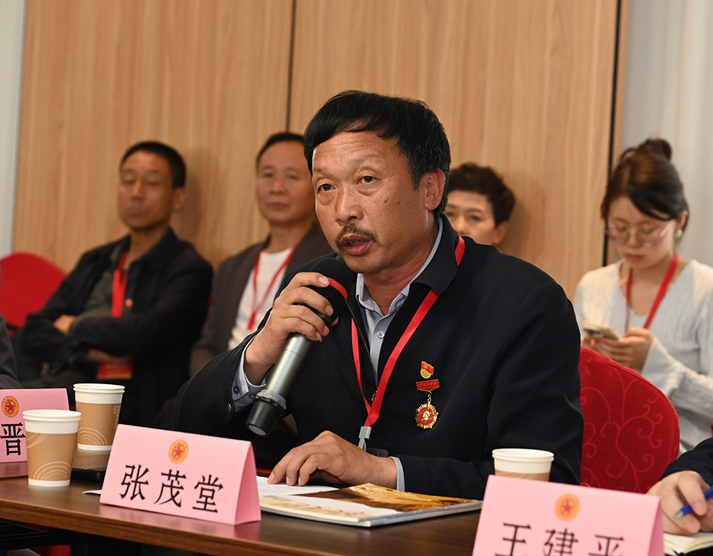 交城县东社村党支部书记兼红军东征纪念馆馆长张茂堂交流发言。