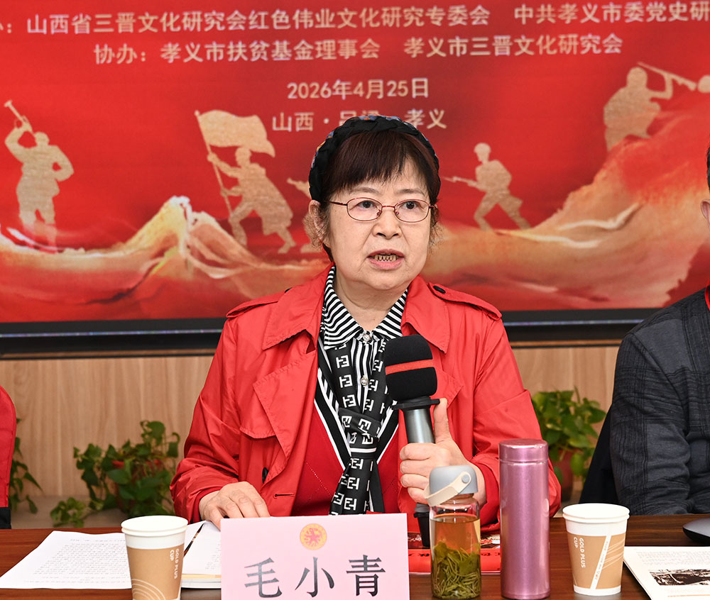 2026年4月25日,由山西省三晋文化研究会红色伟业文化研究专委会、孝义市委党史研究室联合主办的纪念红军东征90周年暨革命英烈信息调研工作座谈会在孝义市召开。中国关心下一代红色伟业爱国主义教育基地执行主任、毛泽东主席侄女、北京红色伟业文化传播有限公司党总支书记毛小青,著名党史军史专家、中国人民解放军原总参宣传部大校王立华,山西省三晋文化研究会副会长冯潞、驻会副秘书长成五虎,北京红色伟业文化传播有限公司党总支常务副书记成志强,山西省委党史研究院原副巡视员杨玉堂、机关党委专职副书记杨子晋,吕梁市红色文化研究会会长成永生,孝义市扶贫基金理事会会长任张广、市三晋文化研究会会长任化清等出席会议。省三晋文化研究会、各地东征纪念馆负责人及党史研究领域学者60余人齐聚孝义,共同回望红色革命征程,传承伟大东征精神,凝聚奋进发展力量。孝义市委党史研究室主任张建益主持座谈会。
