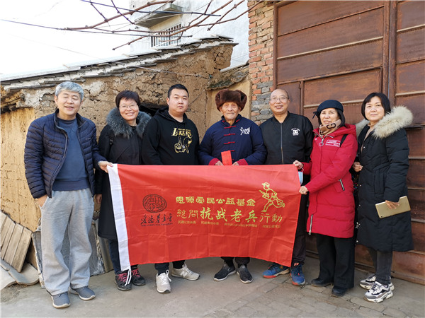和周老聊了会儿天后,志愿者驾车到叶县洪庄杨乡慰问97岁抗战老兵杨宝山,送达抗战胜利75周年大礼包。杨老也是我国首批入朝参战的抗战老兵和抗美援朝老兵,因1975年8月发大洪水冲走了他的档案,至今享受不了抗美援朝老兵待遇。他中年丧子(唯一的儿子),和91岁老伴相依为命地把孙女拉扯大。大家没有见到大娘,就问大娘去哪里儿了?杨老红着眼圈说“昨儿黑半夜得急病了,孙女连夜回来送医院,一查是大面积脑梗瘫痪了,孙女正给看病哩,也不知道现在咋样了?”正说着,杨老孙女回来接老人去她家住,老人不会做饭,近百岁了,一个人在家她不放心,接去了方便照顾爷爷奶奶。看着命运多舛的杨老,志愿者心里很沉重,大家安慰杨老:“现在医学发达,大娘不会有事,会慢慢恢复的。”志愿者给老兵穿上棉袄奉送上致敬金,叮嘱老兵到孙女家好好吃饭,保重身体,这样才能照顾好老伴。