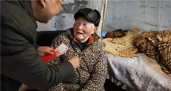 从张老家出来,开车半个小时到章化乡左沟村慰问百岁老兵刘永才。老兵精神状态很好,听力无障碍,记性不如以前,从军经历记住的不是很多了,只知道是国军13军的,军长石觉,在登封密县打过日本。志愿者问:“你都有啥待遇? ”刘老说:“咦,啥待遇?除了你们的基金会每月600块钱,其他没有一样儿(方言啥都没有),不花国家的钱呀,不给国家添麻烦!”。百岁老人豁达感恩的胸怀,让大家肃然起敬。紫藤为老兵送上爱心人士的致敬红包,嘱咐家人照顾好老兵。