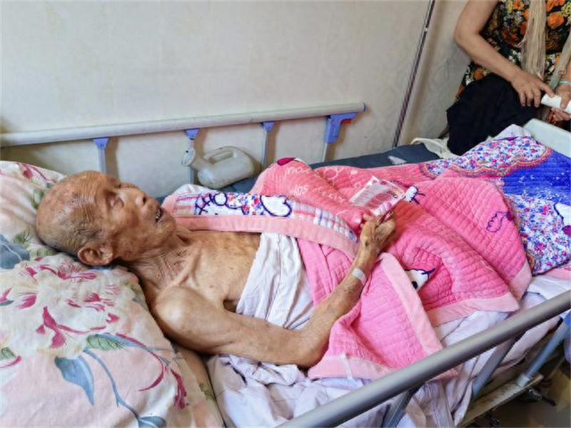 潘海斌老先生因跌倒在卧床养病志愿者前来探望。
