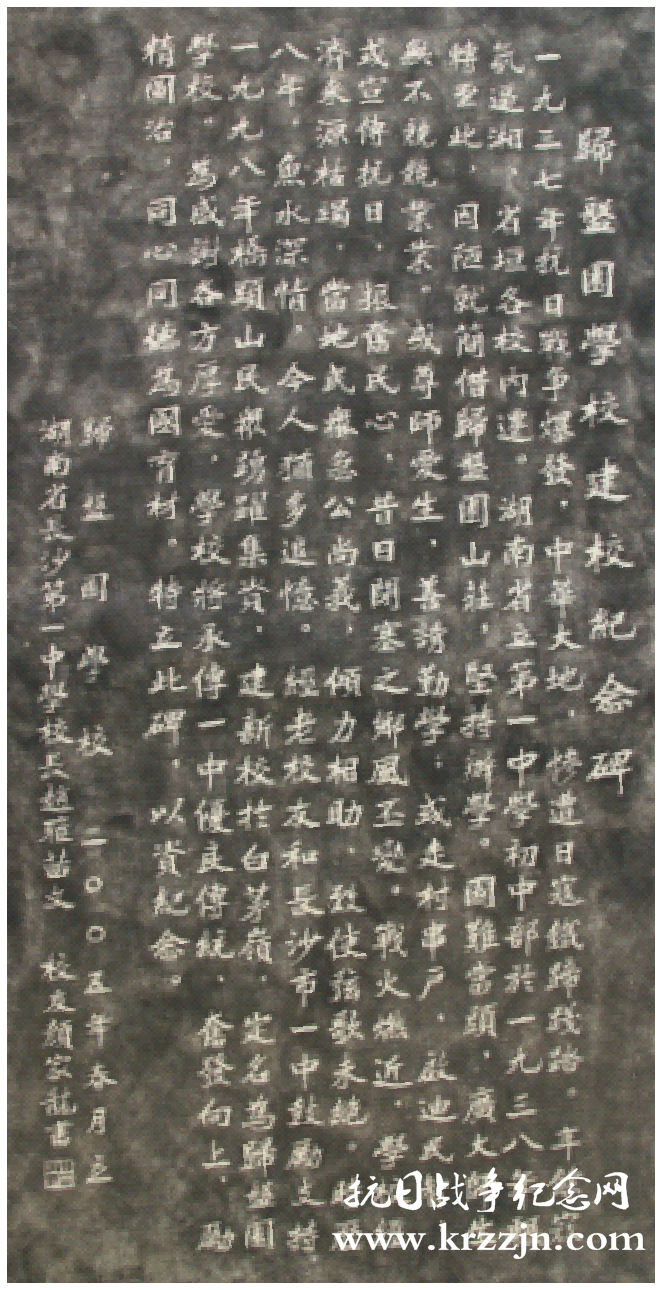 2/11 1999年12月,一中和七星街镇政府立此纪略碑。碑文由校友王俨思教授撰就,校友颜家龙先生书写,现安放于七星街中学校园里。