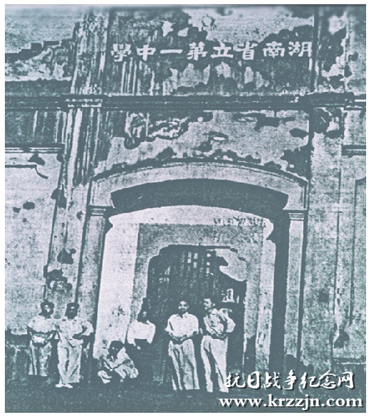 在抗日战争时期,长沙屡遭日寇轰炸,战争使长沙遭受了空前的劫难。校址初迁宁乡高桥,然后迁安化驿头铺、桥头河七星街(今属涟源市)。