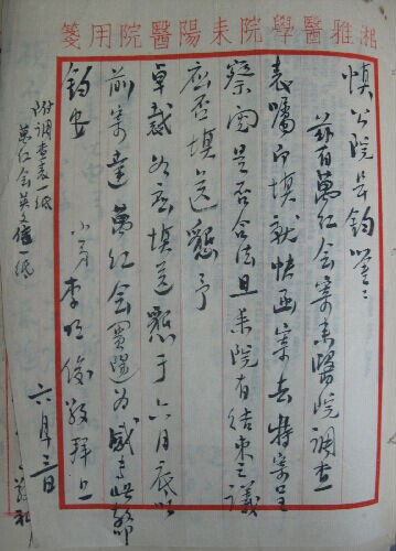1.耒阳分院院长李明俊致湘雅医学院院长张孝骞的信及函头纸