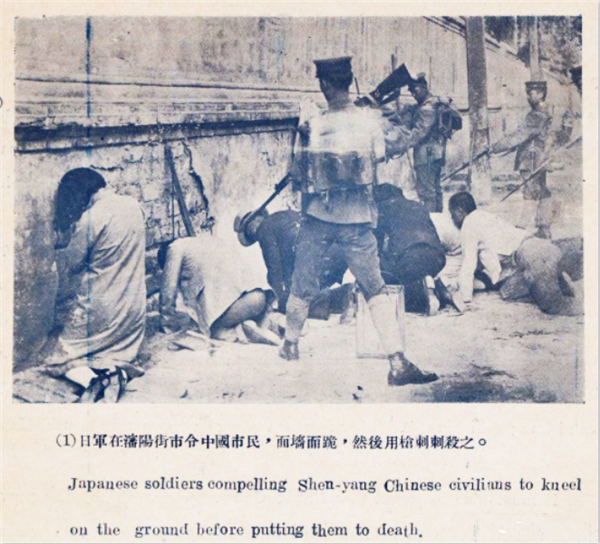 图为:日军在沈阳市街头残杀无辜的中国市民。