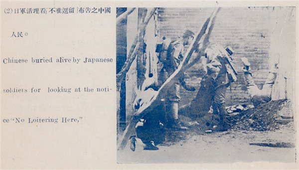 日军抢老百姓的粮食及用品,老百姓和日军理论,但是日军不会听,而是说我们中国人不是良民,甚至直接杀掉。图为:日军活埋中国人民。