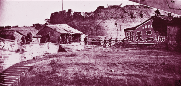 11月下旬,日军第十三师团开始进攻江阴。图为日军工兵爆破江阴西门。
