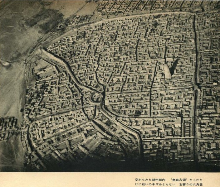 航拍锦州城。日军攻克锦州,又是一场不流血的战争。