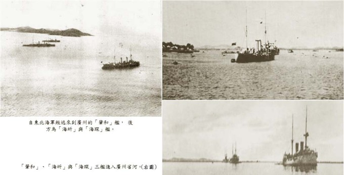 东北三大舰叛逃南下进入珠江的新闻照片。