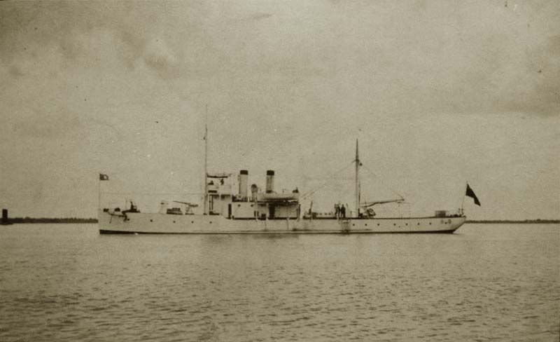 “海静”号原为浙江海警局的炮舰,是欧阳格以私人关系借用而成为电雷学校的练习舰之一,借用后将舰尾的3寸炮拆除改装吊杆兼做布雷舰用。