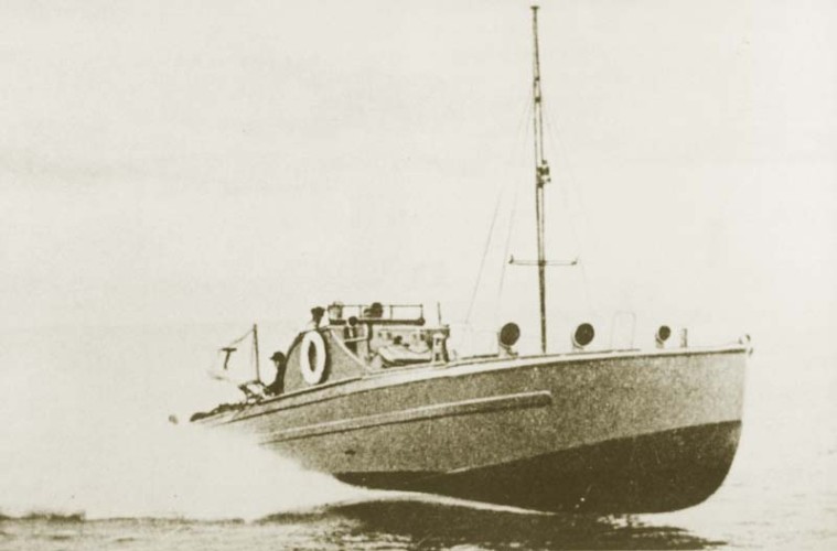 电雷学校向英国Thorncroft公司进口的鱼雷快艇出厂试,本艇属于滑航艇型的摩托快艇(CMB)。