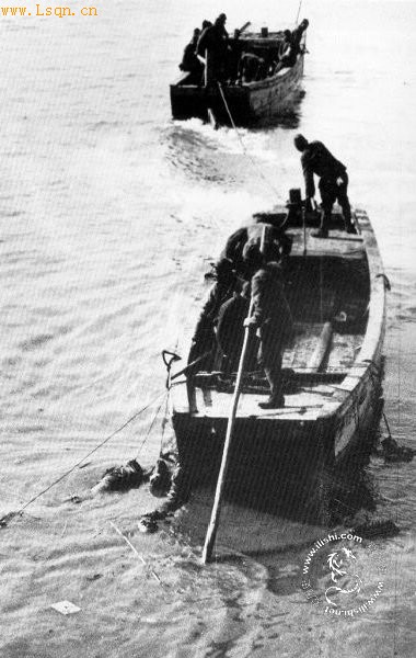 1937年南京大屠杀后,日军在打捞江中的中国军民尸体,以便掩埋。