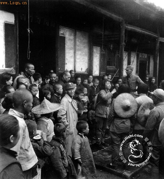 1939年,浙赣边区的游击队出发之前,由女队长向队员做动员讲话。