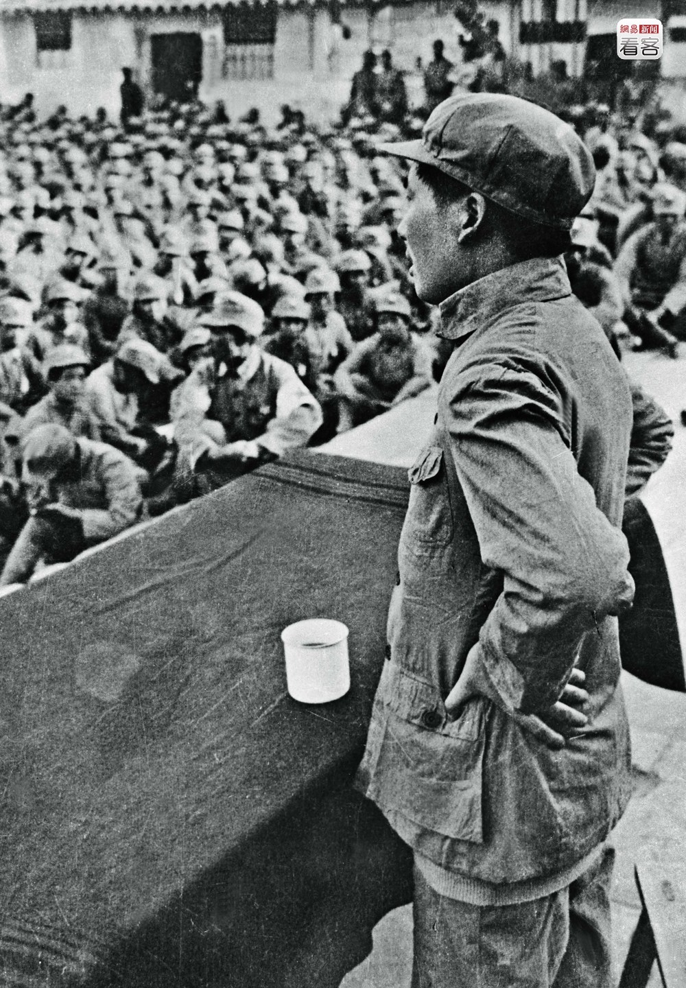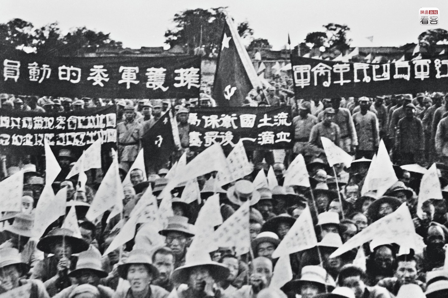 图为1937年8月,陕西省泾阳县云阳镇,中共中央革命军事委员会召开红军改编誓师抗日动员大会。
