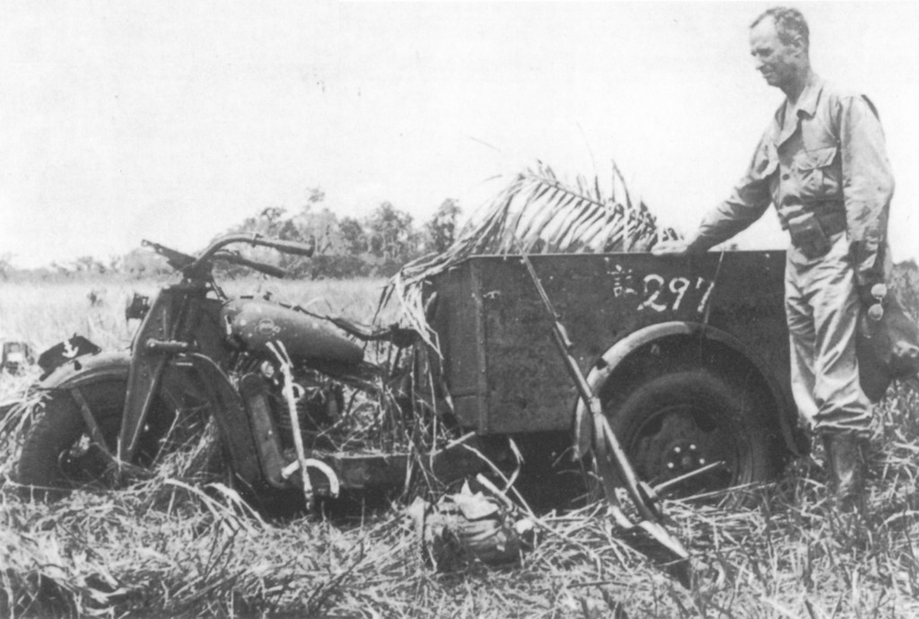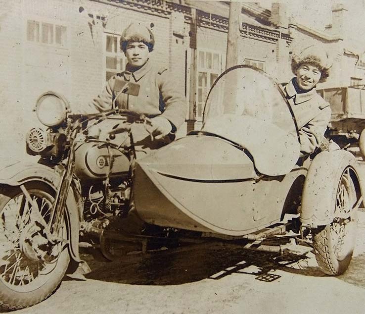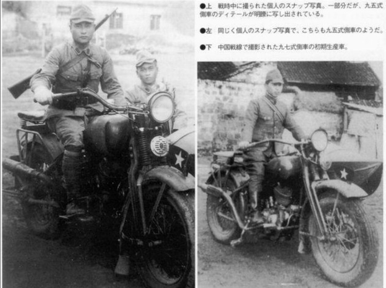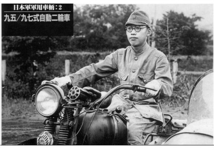 一位日本兵在中国战场上留下的照片,他骑在一辆九七式挂斗摩托车上。
