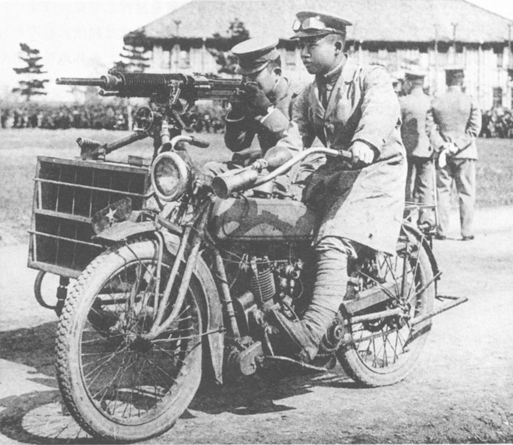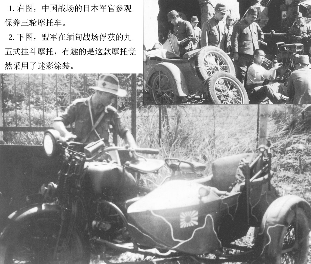 日本海军陆战队士兵装备的95式、97式军用摩托。