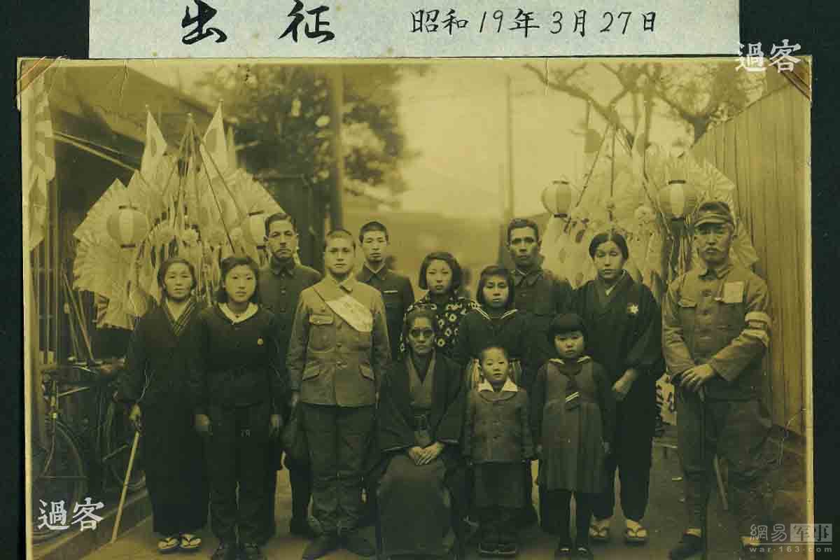 在一幅13个人合影的大照片中,21岁的相册主人站立在母亲身旁,周围的亲朋好友们脸上多少有些凝重,上面注释着“出征,昭和19(1944)年3月27日”。他就是在这一天,踏上了出征中国的遥远路途。