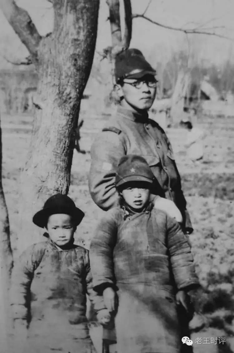 日军士兵与中国儿童合影,头戴日军军帽的中国儿童表情诡异。