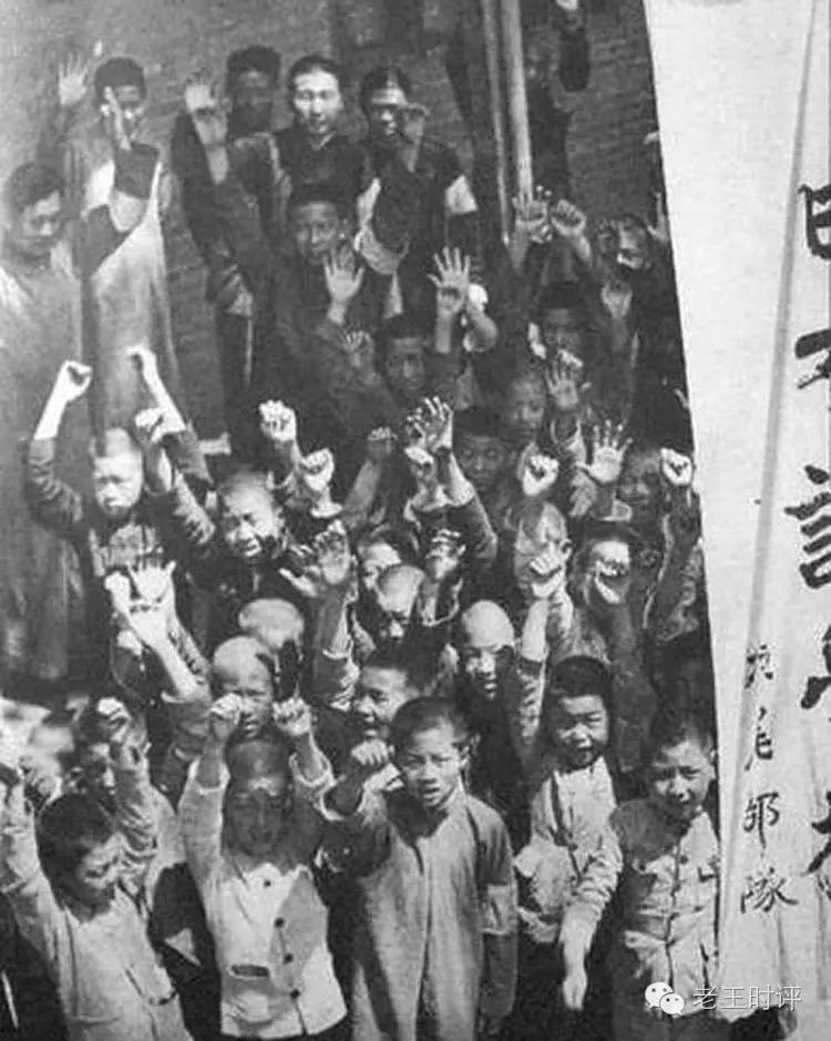 占领九江日军组织百姓进行反蒋游行,乱哄哄的人群更像是被日军驱赶着前进。