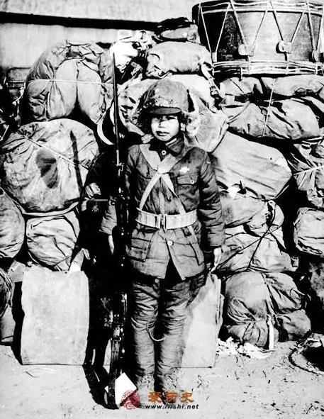 当时年仅10岁!他是一位陆军二等兵!他的表情冷峻坚决,小眼瞪得溜圆,小嘴咬得梆紧,小胸脯挺得老高。
