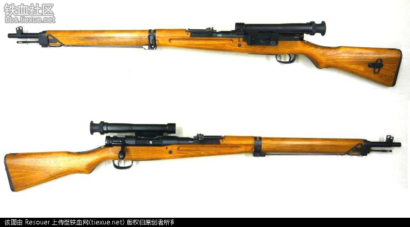 九七式狙击步枪:为日本于1937年(昭和12年、皇纪2597年)设计制造与服役的手动枪机式狙击步枪,由于以皇纪年份命名,故名为九七式狙击步枪;日本自侵华战争起一直采用至二战战败为止。