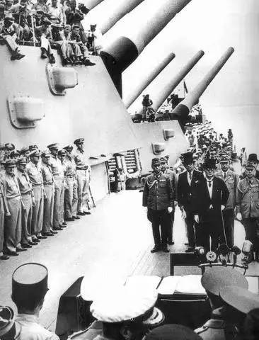 1945年9月3日,日本向盟军投降仪式在东京湾密苏里号军舰上举行