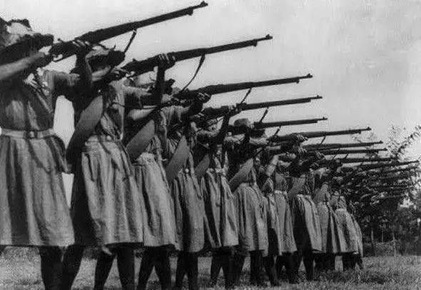 正在举枪接受训练的女兵。