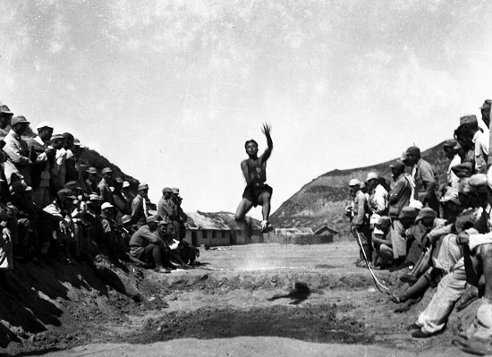 1940年3月8日,根据地妇女练习投弹。沙飞/摄