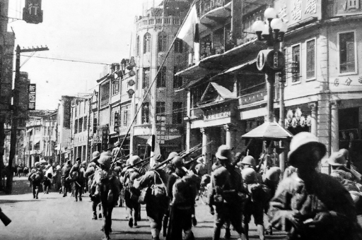 国民党军队逃离后广州城内被遗弃的百姓遭日军围捕