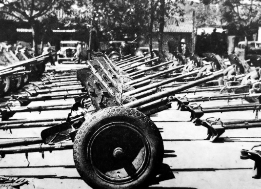 在广州城内日军没有受到什么抵抗,但却收缴了一大批国民党军队逃跑时留下的堆积如山的武器和战利品。这些照片都是出自当年日军占领广州后拍摄的记录照片。(日军小坂部队缴获的高射炮)