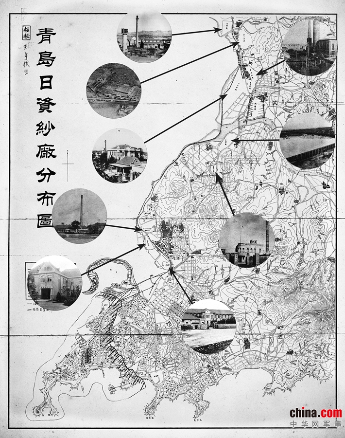30-20世纪30年代,日资纱厂在青岛的分布图。〔青岛市档案馆编:《青岛制造之路》,第106页〕
