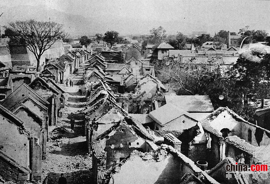 8-被日军炮火炸坏的青岛民居、商铺。〔阎立津等编著:《日本两次侵占青岛图志》,第36页〕