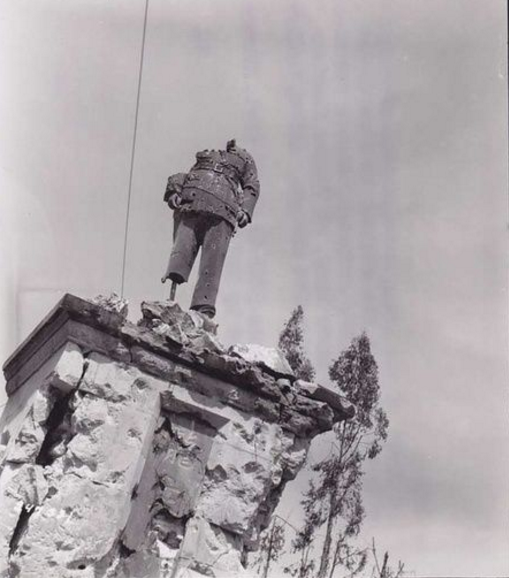 1944年8月25日,在腾冲市南城墙树立着一座云南省省长的塑像。这部分城墙和这座塑像现已残缺不全。
