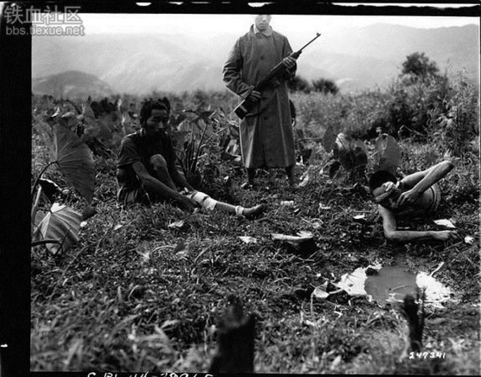 1945年4月 中国战场上的中国伤员。这张图片曾经在网上有较多的流传,大家都以为他是一名牺牲的士兵,但是没有人知道这张图片的源头居然是在美国国家档案馆,照片的注释写出了这个士兵的部队番号,其实他并没有牺牲,只是受伤了。