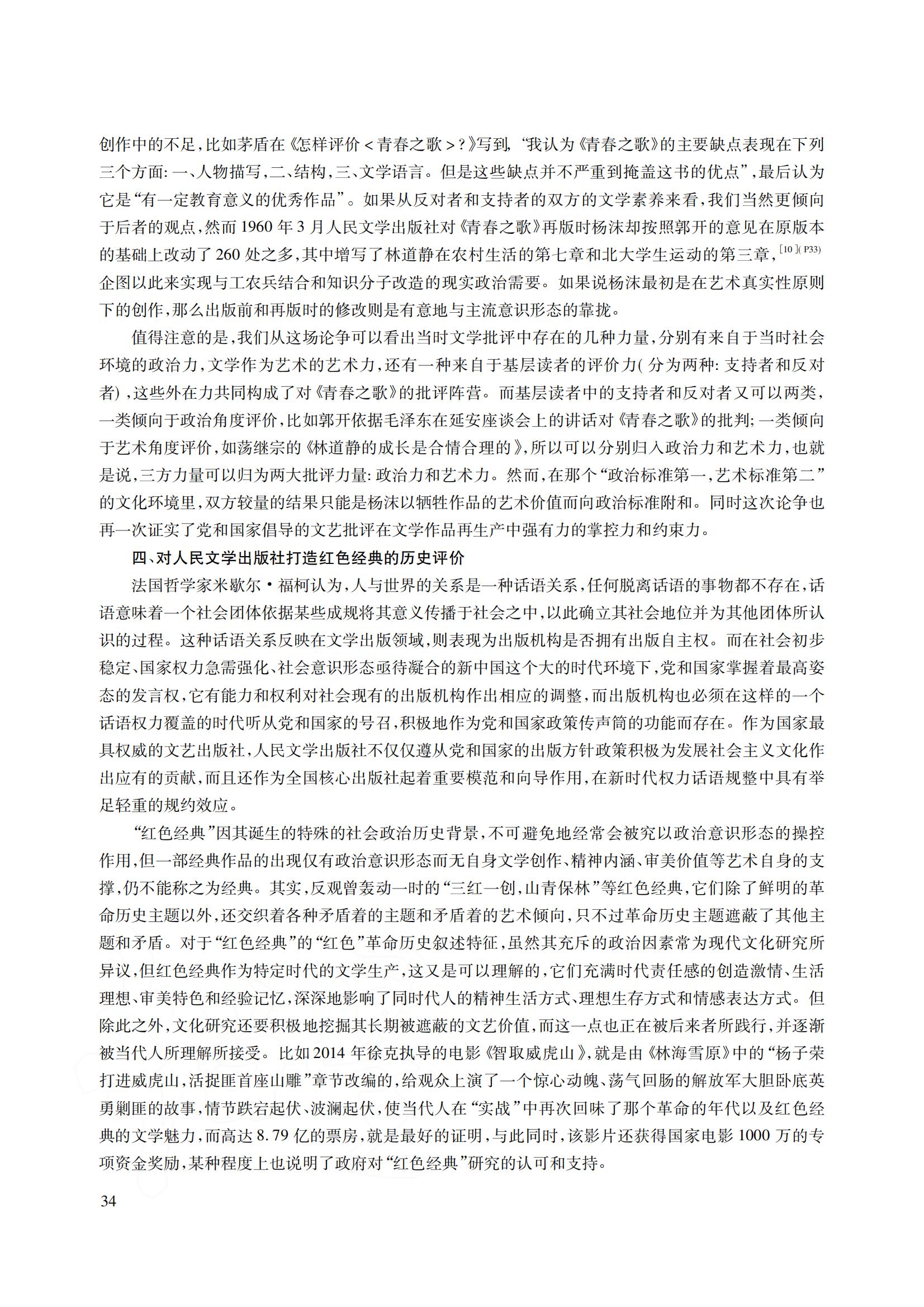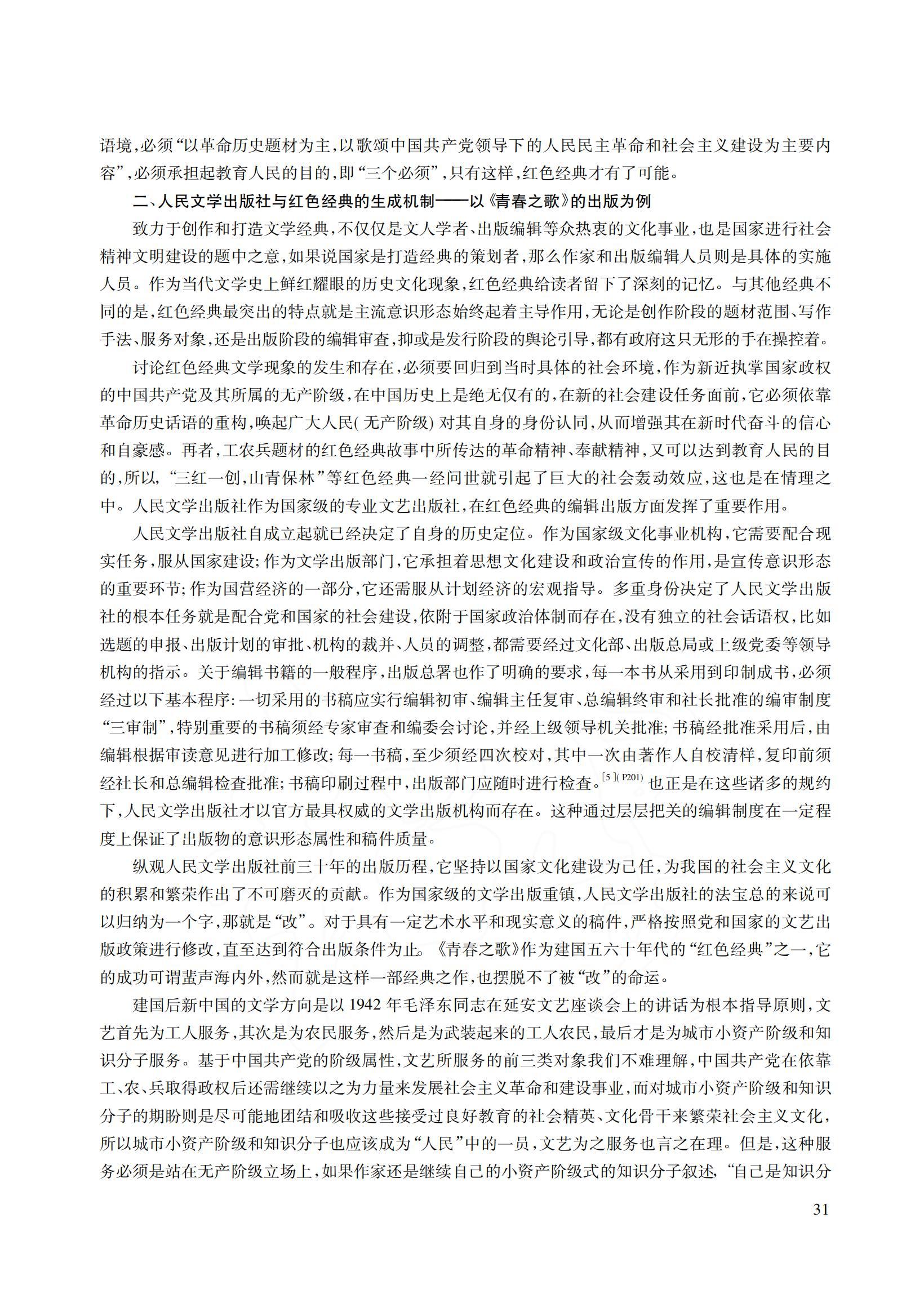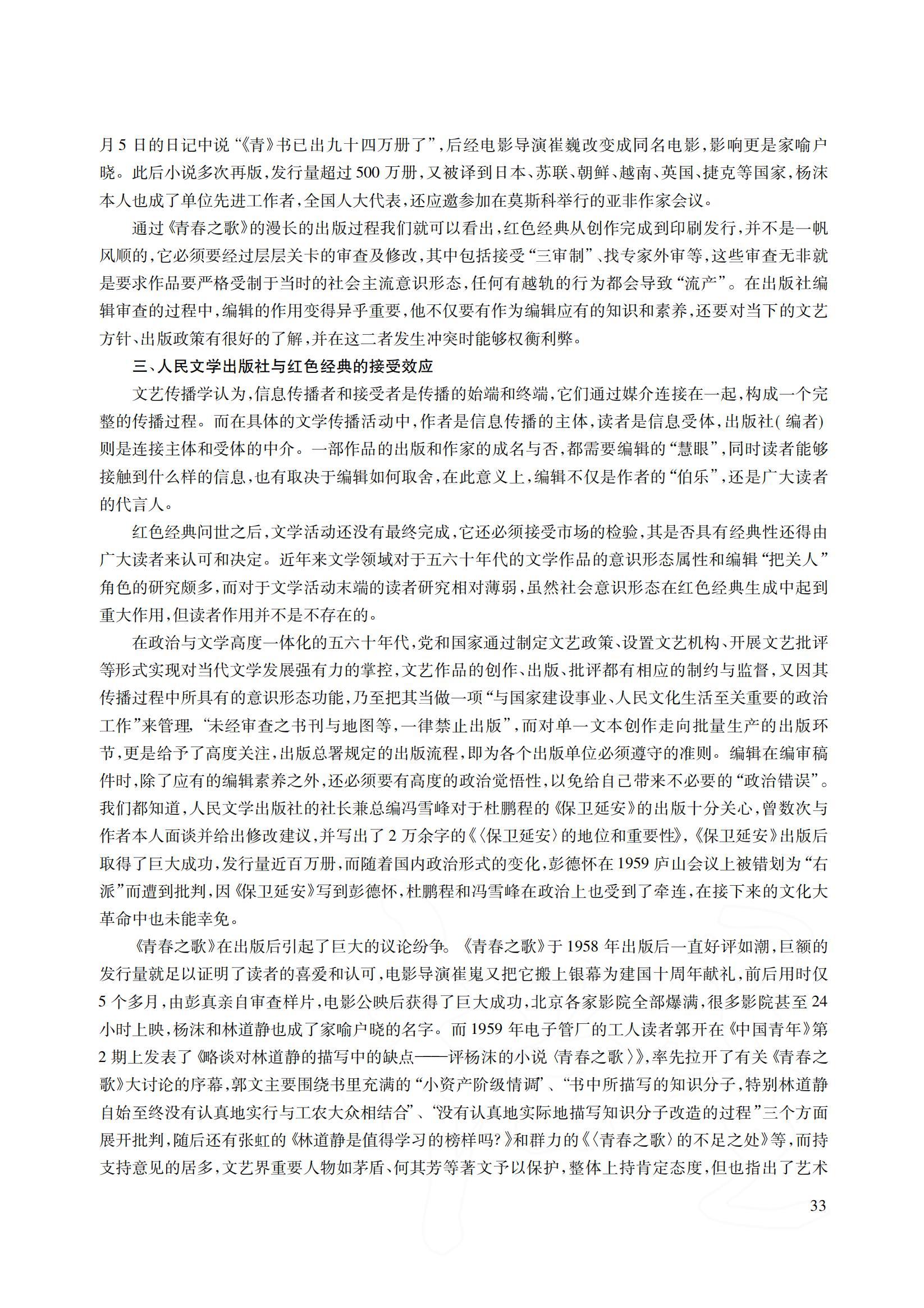 二、人民文学出版社与红色经典的生成机制——以《青春之歌》的出版为例