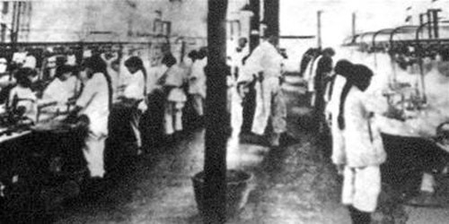 在监工皮鞭下劳动的无锡乾生丝厂女工