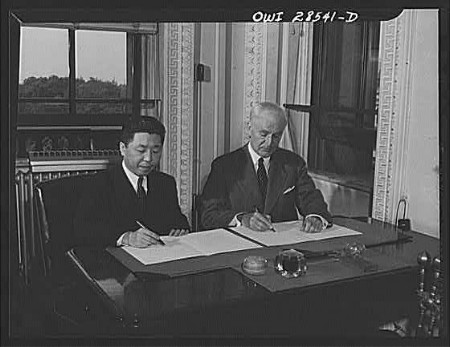 蒋介石为中美、中英签新约发表《告全国军民书》,号召全国.军民更应奋发图强。