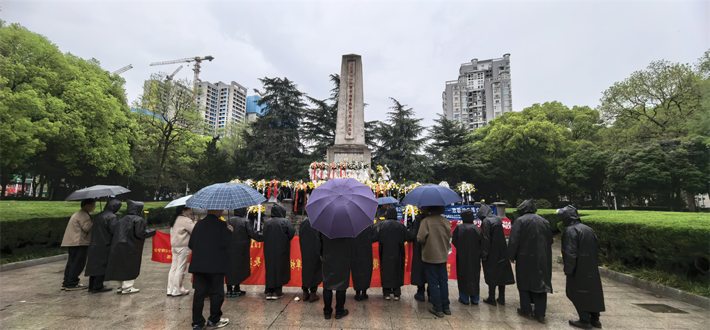 4月5日,在湖南省海坤和平公益发展中心的支持下,长沙市抗战文化研究会、湖南省黄埔军校同学会、长沙市黄埔军校同学会、长沙市黄埔后裔联谊会、长沙黄埔书画院、湖南炎德文化实业有限公司、抗日战争图书馆、抗日战争纪念网、湖南知青网、中共湖南炎德文化实业有限公司党支部、中共长沙市抗战文化与文博学会党支部、湖南民革省直文化创意支部、湖南民革省直综合支部的代表与当地市民齐聚一堂,共同前往陆军第七十四军常德会战阵亡将士纪念塔,隆重开展2026年“跨越时空的悼念—致敬抗日阵亡将士”清明祭活动,以庄重仪式缅怀革命先烈,传承抗战精神。