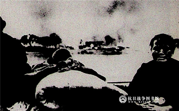 图十六 被日军轰炸后燃烧着的南昌市