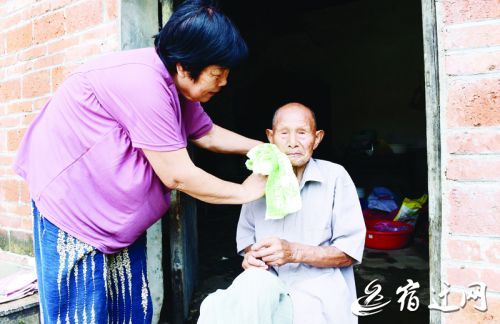 王恒贤的家人给他洗脸。