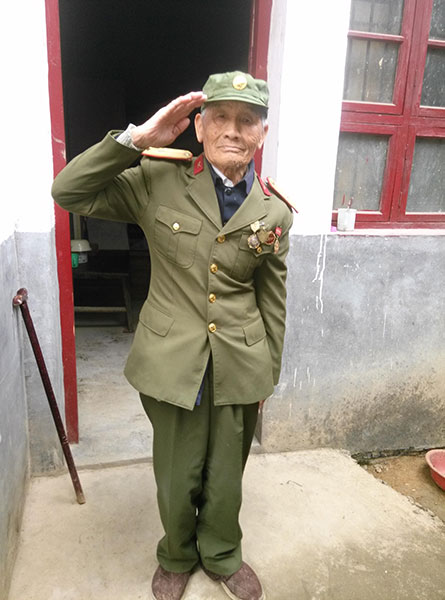 当时真的苦啊!我们中还病死了几十个,在过贵州的一个老山界(指山岭)时,上去七里,下来有八里,我也病了,眼睛完全看不清,耳朵也不太能听见了。我就细细地听到连长下了命令,要把我扔在路边算了,旁边我们一个武冈姓黄的排长就说:“这个姓傅的同胞,再抬一下好吗?”那连长就说:“那你抬哦。”那排长就一直抬着我,到了山脚下,那里有条大路,还有条小小的街,街边上有个摆摊子看病的老师傅,他摸了下我的脉,说我得了黄肿病,开了两副药,队伍在那住的几天里,我就好了。