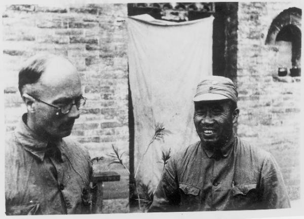 朱德在同林迈可交谈,太行山朱德司令部门前-1939年9月