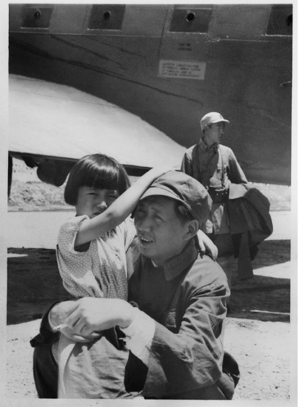 毛泽东和他的女儿李敏 1945年 Colonel Peterkin 摄