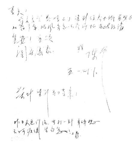 我身体很坏,时常生病。幸寄父母 (1)侍服我,心里非常过意不去。在上次信中,曾经信母亲,要她老人家寄几斤茶叶来给我,现在仍请转告,能早些寄来给我以便我送给他们老人家,聊表我的谢意!我想,母亲一定会答应我的要求,姨母你想怎么样?家事无人料理,确常在我的意料之中,不过梅等亦出于无奈。欲归无力,欲动无能,惟有恳转姨母代为料理,并能督促煦弟 (2),有以助母亲一臂,来日事平之后,梅等决不忘大恩大德。母亲年事日长,有望莫操劳过度,一切看破一点。反正,生不带来,死不带去,所谓赤裸裸的来到这世界,转眼间又将赤手空拳的回去,所不能平的,不能白白的来世走一遭。梅等正有鉴于斯,愿奔走他乡,自谋而生,不愿苟安偷生,将生易轻若鸿毛,这点望能深谅梅等之苦衷,俟后莫再烦言□梅等之行动,实为□幸!大人等幼读四书,文墨知其一二种,义识其大端。