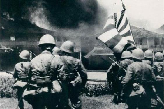 等日军爬到半山腰时,他们立即向着日军猛烈射击。