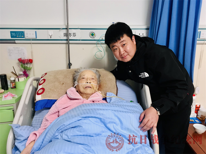 口述采访团队负责人任刚强与老兵陈亦芬合影
