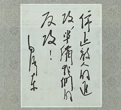 毛泽东同志题字:停止敌人的进攻,准备我们的反攻
