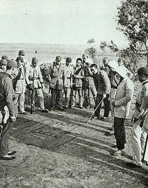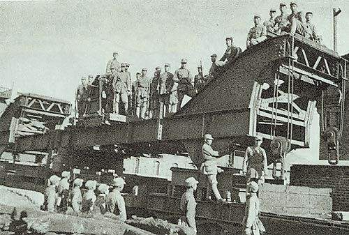在收复山海关的战斗中,我先头部队占领山海关铁路工厂的战士们在工厂的留影