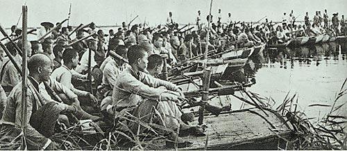 活跃在冀中白洋淀上的我军雁翎队整装待发