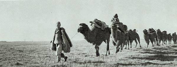 绥远人民组成骆驼运输队,为我军运送粮食